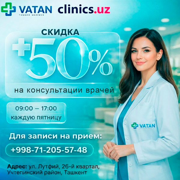 СКИДКА 50% на консультации врачей — только по пятницам в клинике Ватан тиббиёт маркази!