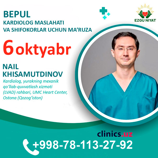 BEPUL TIBBIY MASLAHAT VA MA’RUZA — yurak yetishmovchiligini davolash bo‘yicha Ezgu Niyat klinikasida!