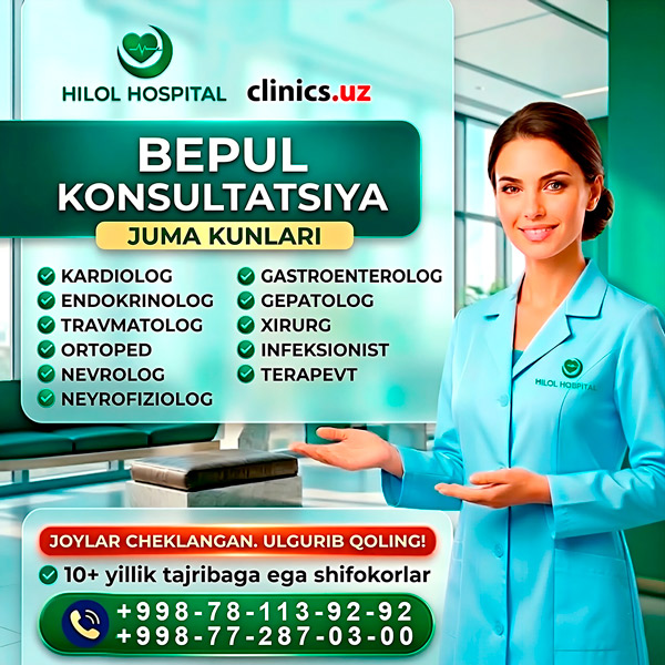 BEPUL KONSULTATSIYA — har juma kuni Hilol Hospital klinikasida!